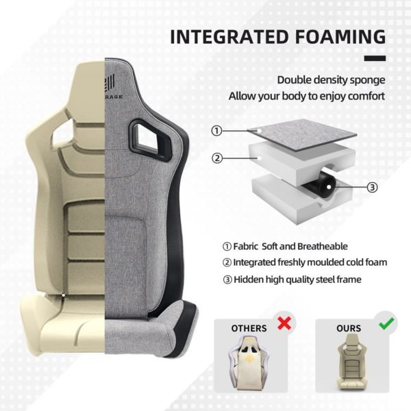 Materiales de primera calidad: nuestros materiales seleccionados le permitirán disfrutar de una experiencia de asiento increíble. La espuma viscoelástica y la tela pueden ajustarse y sostener su cuerpo perfectamente.